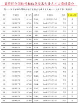 近日,我校学生在第十一届“蓝桥杯”全国软件和信息技术专业人才大赛中获得佳绩。我校来自信息工程学院、机电学院、生命科技学院、园艺园林学院、数学科学学院、化学化工学院、资源与环境学院、食品学院、动物科技学院等多个学院的261名参赛学生参加了大赛,其中,41名同学获得省赛一等奖。获得一等奖的41名学生将参加11月份的全国总决赛。